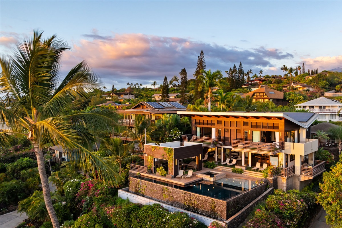 Welcome to Elevated Luxury — where sophistication meets natural beauty. This 4,000+ square foot private “Modern-Hawaiiana” estate offers an unparalleled experience of indoor/outdoor Maui living with panoramic views of the Pacific Ocean and distant Hawaiian islands. High-end finishes, thoughtful design, and abundant space for families or groups create the perfect setting for an unforgettable island escape.